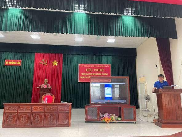 Chiều ngày 14 tháng 8 năm 2024, tại Hội trường đa năng xã Hoằng Tân, Ban chỉ đạo chuyển đổi số xã phối hợp cùng với Phòng Văn hóa Thông tin và Trung tâm Viễn thông huyện Hoằng Hóa tổ chức triển khai thực hiện Mô hình 3 KHÔNG, mở đợt cao điểm cài đặt chữ ký số cá nhân cho người dân trên địa bàn toàn xã, đồng thời hướng dẫn thực hiện các tiêu chí thôn thông minh, xã Nông thôn mới kiểu mẫu.