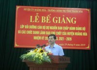 Chiều ngày 29/8/2019, Huyện ủy Hoằng Hóa phối hợp với trường Chính trị tỉnh tổ chức bế giảng lớp bồi dưỡng cán bộ dự nguồn Ban chấp hành Đảng bộ và các chức danh lãnh đạo chủ chốt của huyện, nhiệm kỳ 2020- 2025, 2021-2026.