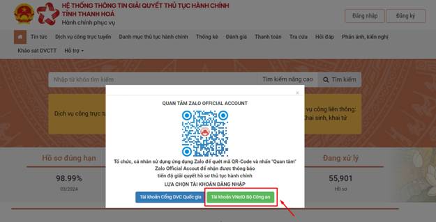 HƯỚNG DẪN CÔNG DÂN ĐĂNG NHẬP HỆ THỐNG THÔNG TIN GIẢI QUYẾT THỦ TỤC HÀNH CHÍNH TỈNH THANH HÓA BẰNG TÀI KHOẢN ĐỊNH DANH ĐIỆN TỬ VNEID