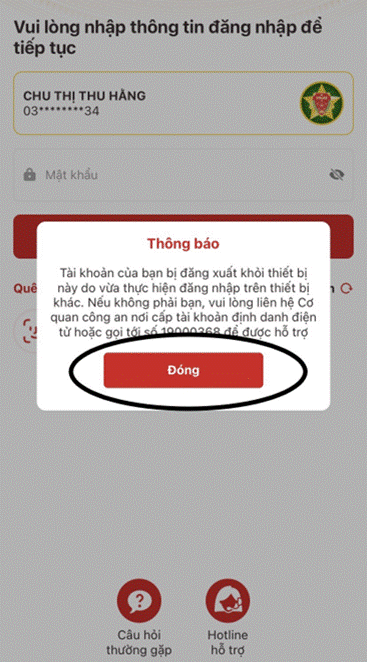 - Bước 7: Sau đó màn hình điện thoại hiện lên trang thông báo như hình, bấm [Đóng].
